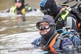 Im ersten Szenario trainierten die Taucher die taktische Strömungssuche. Dabei wird ein definierter Bereich mittels Pendelsuche systematisch abgesucht, während der Taucher über eine Führungsleine gesichert wird – ein essenzielles Verfahren bei Personensuchen oder der Suche nach Gegenständen im fließenden Gewässer.