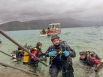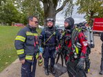 Die in rund 16 Metern Tiefe „versteckte“ Tauchpuppe konnte durch die Suchkette der Taucher gefunden werden. Die Feuerwehrboote aus Vöcklabruck und Seewalchen unterstützten die Taucher am Wasser.